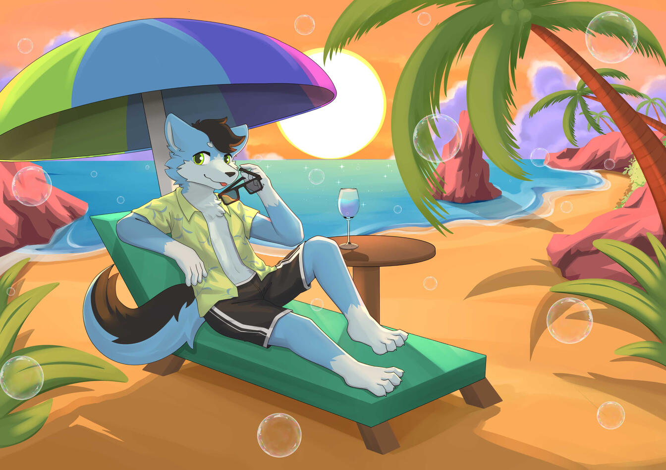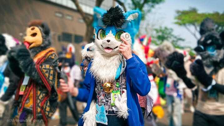 Species: Dog Pomsky (Mix Pomeranian & Husky)Have Crown mark between the eye and always wear Sunglasses and Blue Hoodie as his mark & signature.Blue Base : 85CFFC - 8AEBFF - 739def